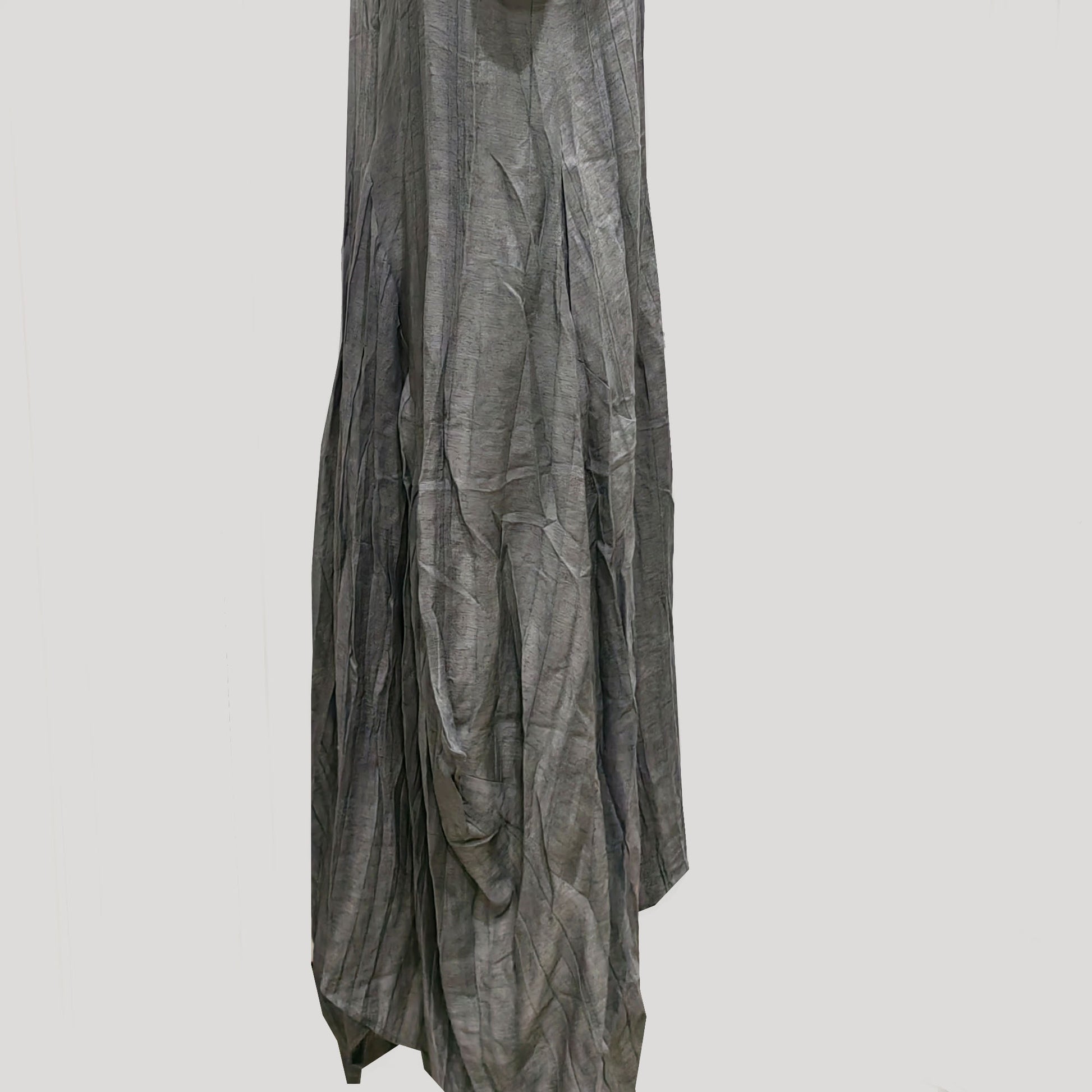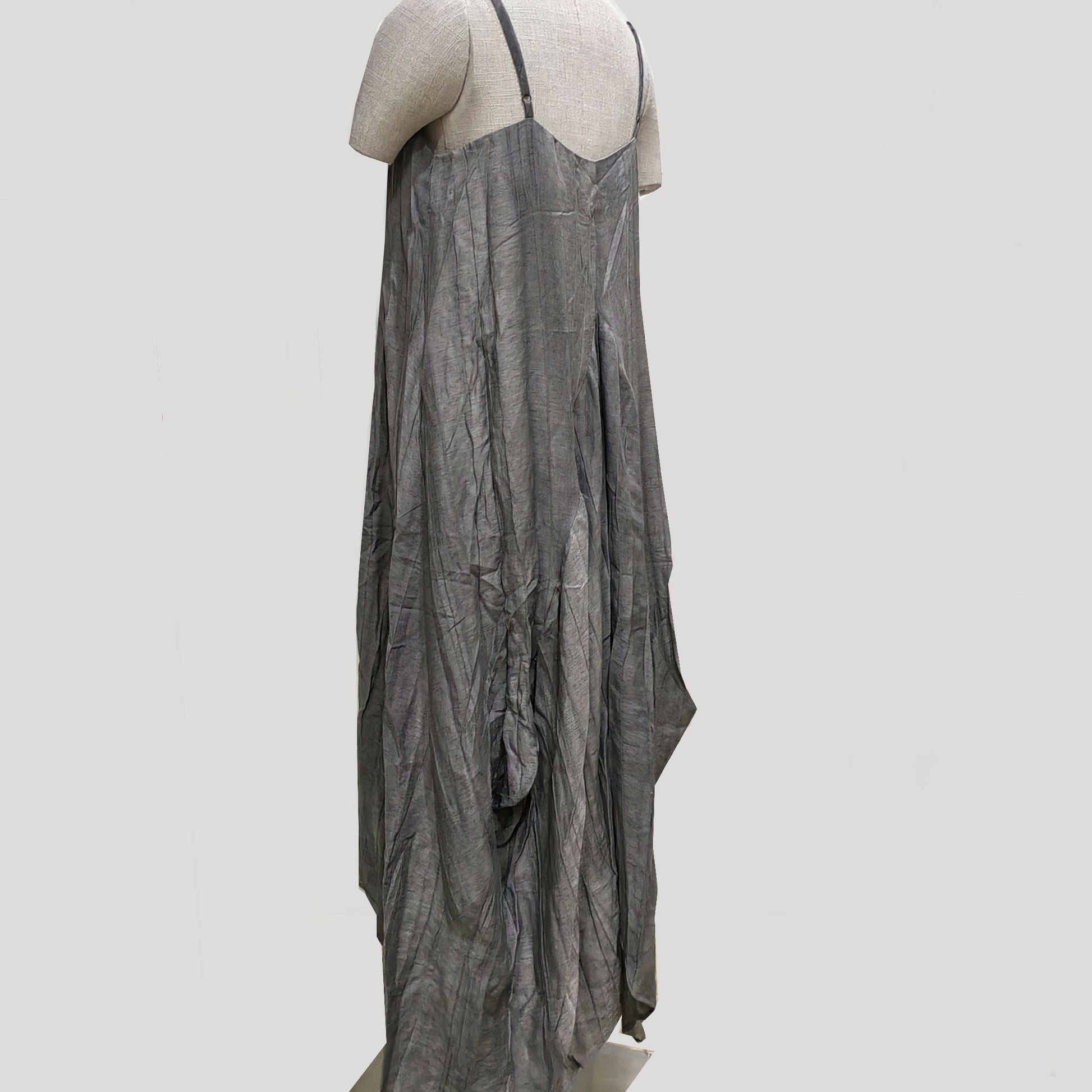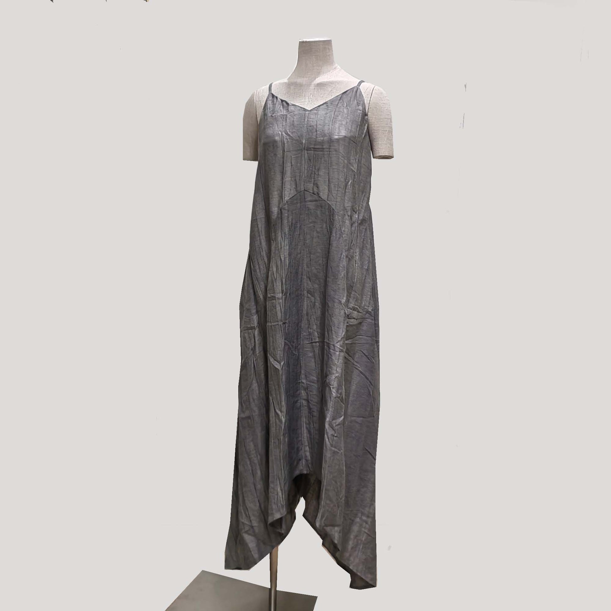 Assymmetrical Creased Linen Gray color plant dyed color slip dress Linen tencel fabric
