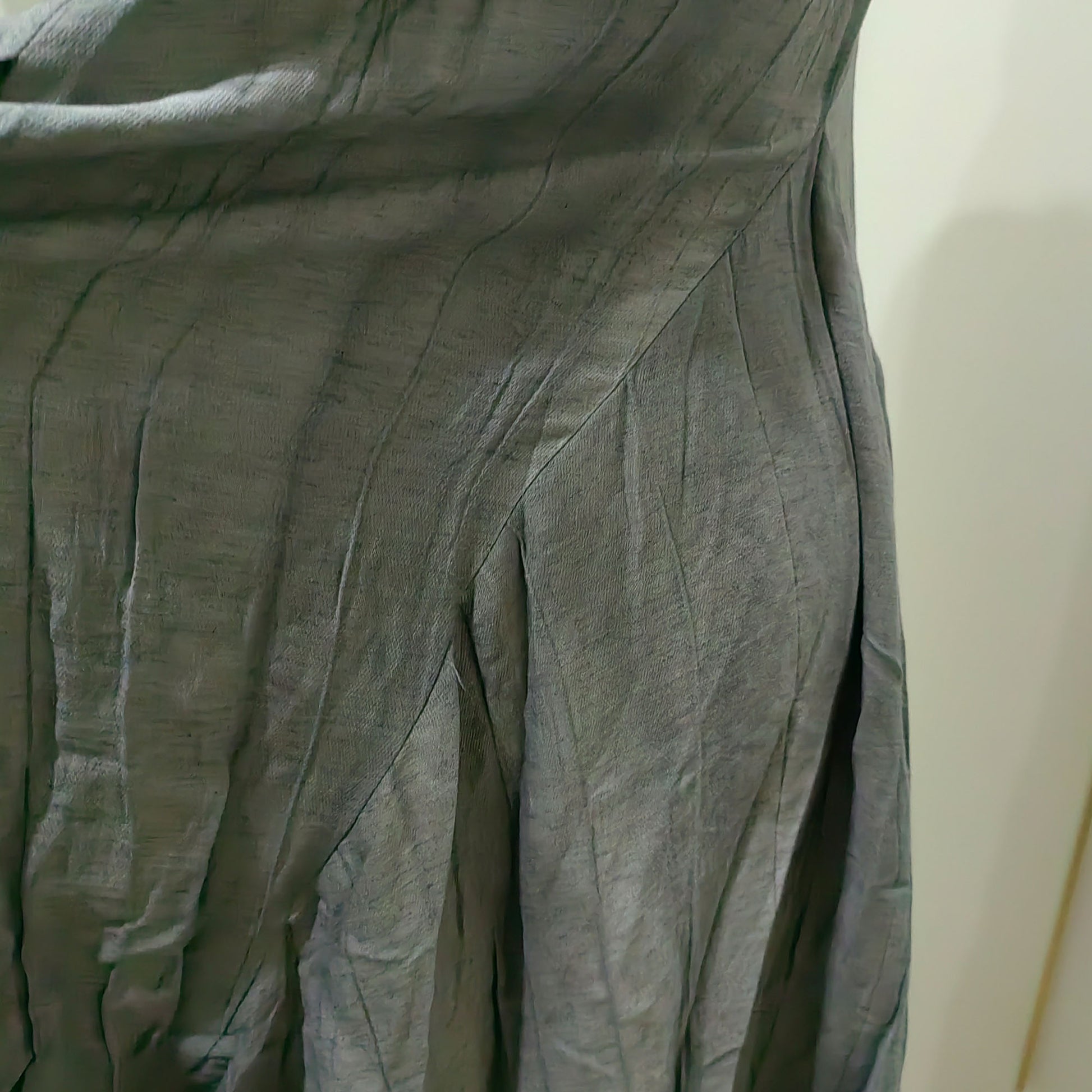 creased fabric, plant dyed gray color.