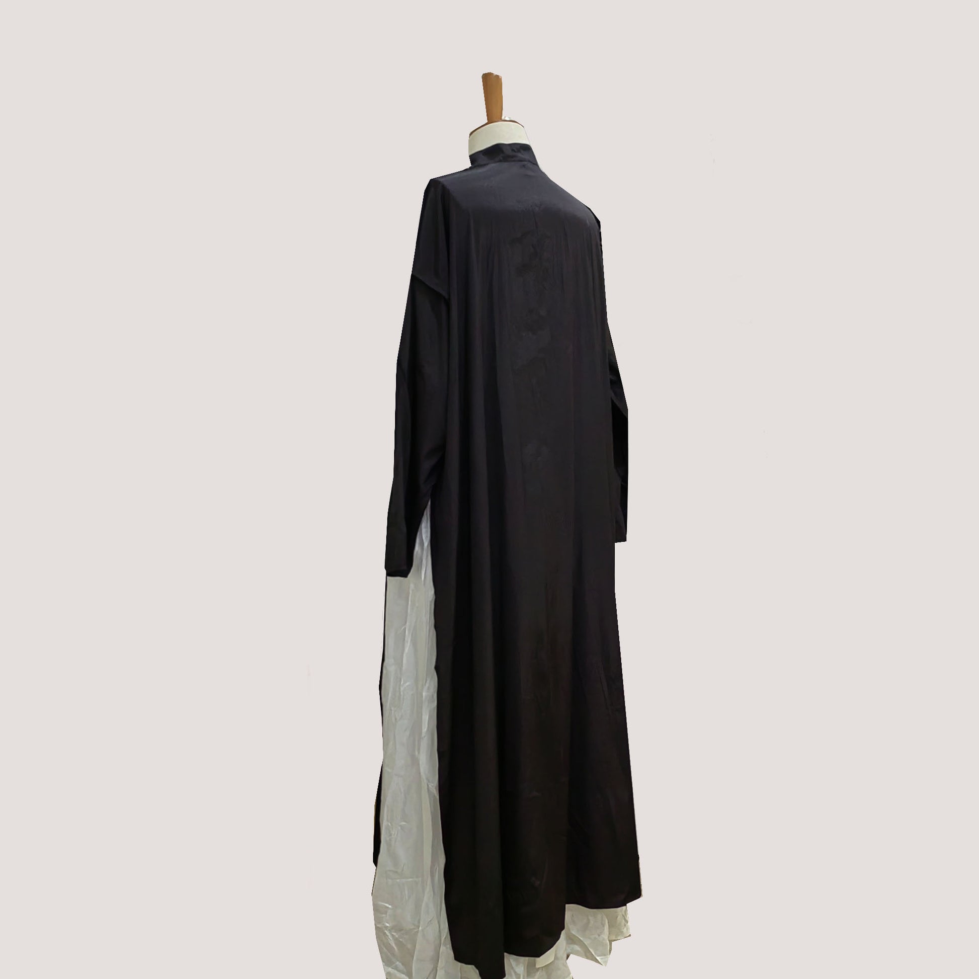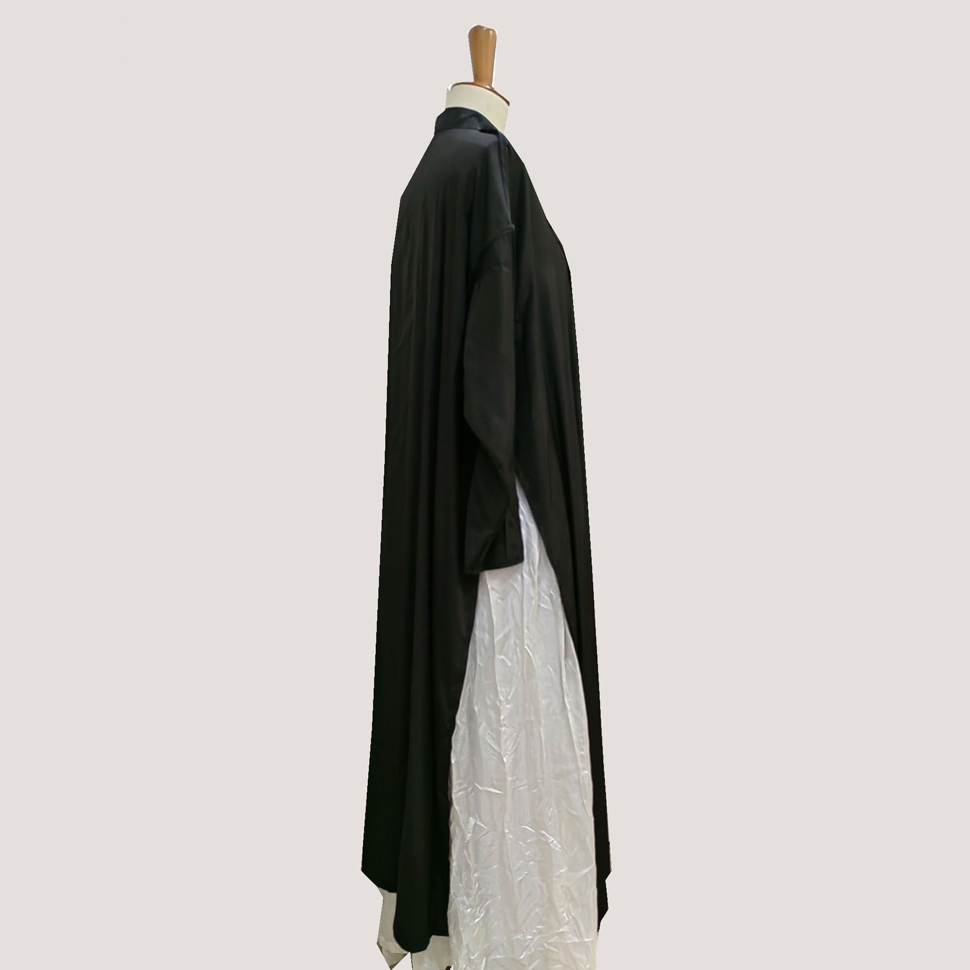 Black Tencel Cheongsam style long slits loose fit qipao high openning cheongsam style top