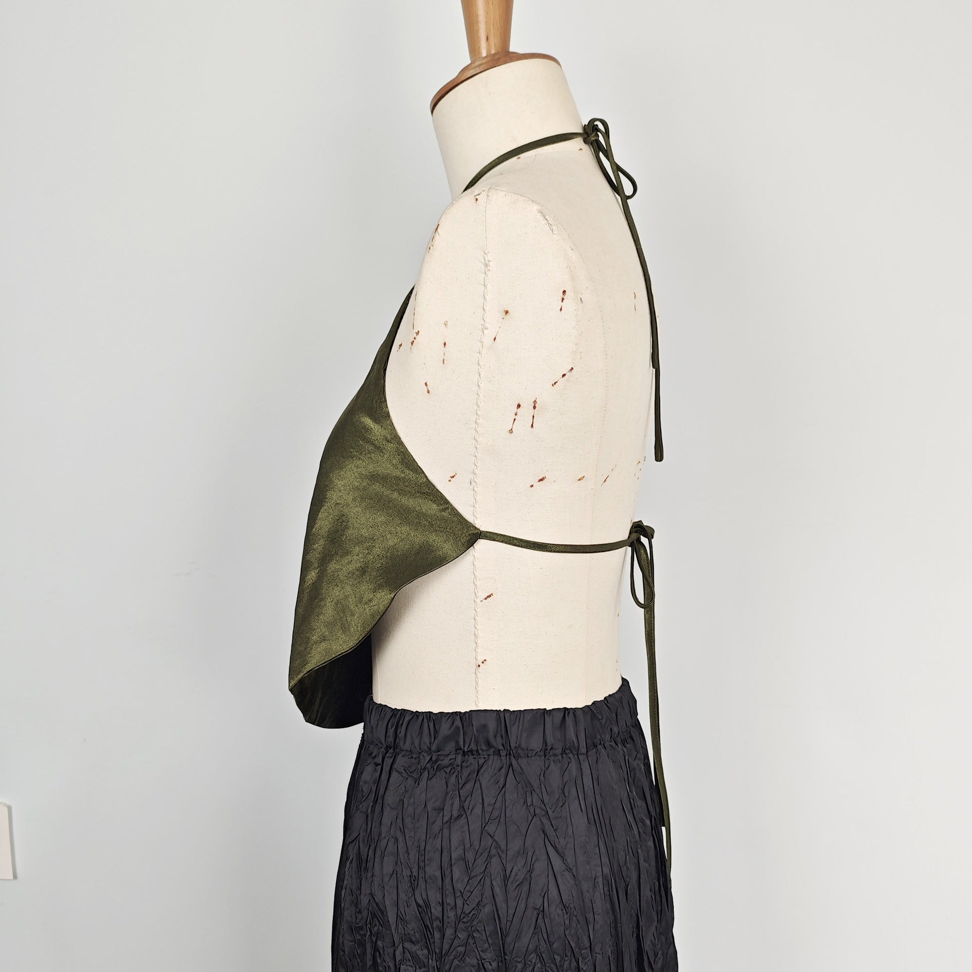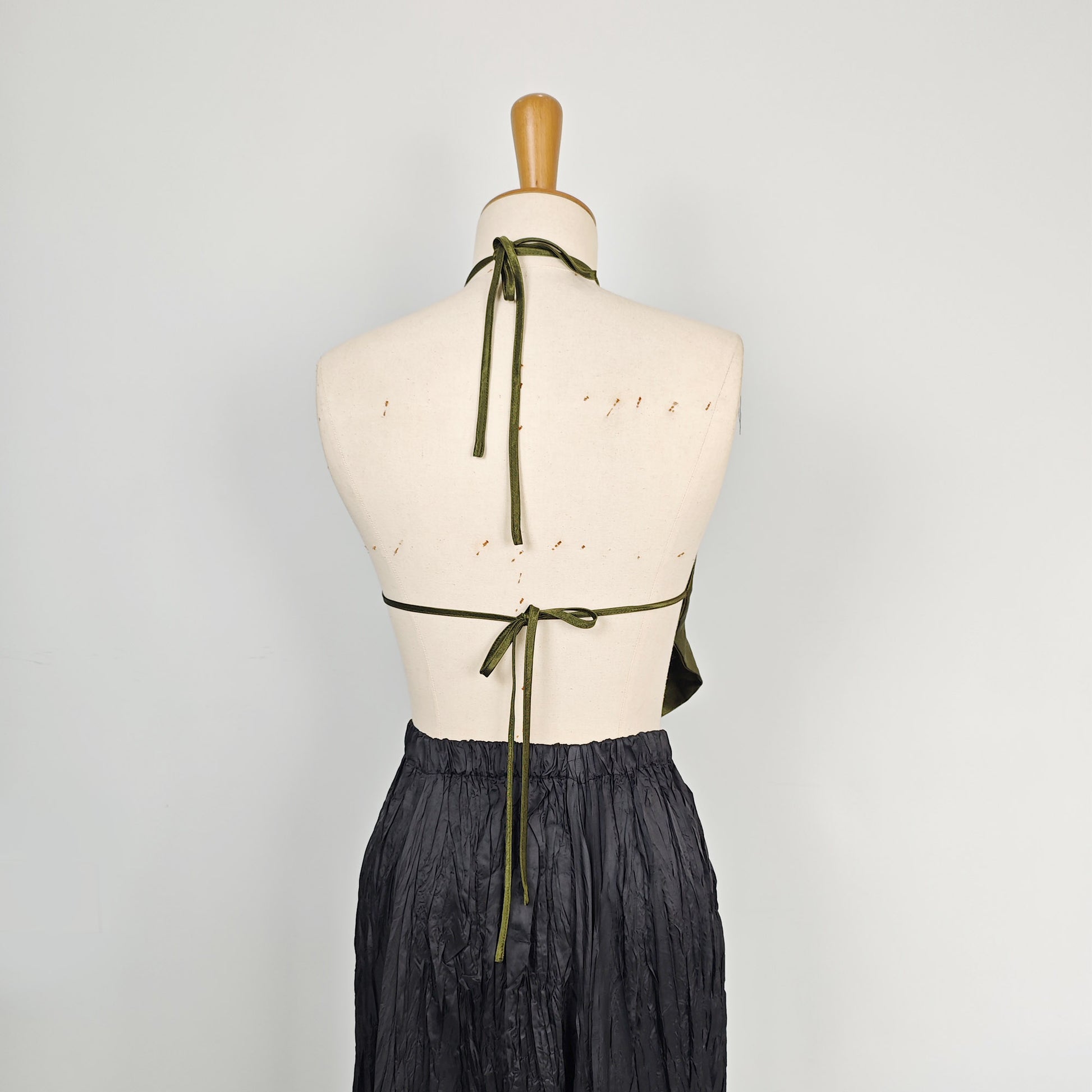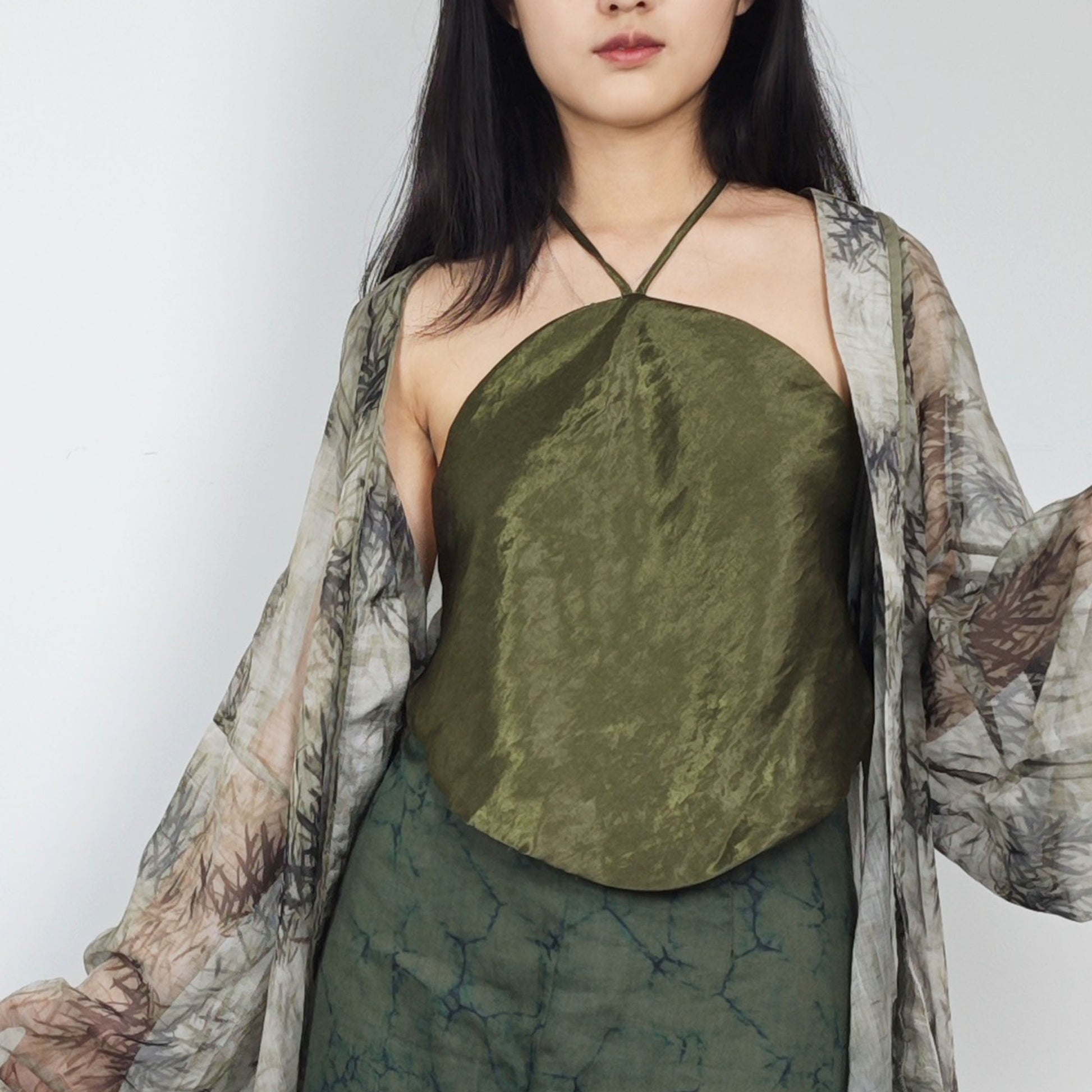 color: olive green. This cami is tie up at the back neck, and it is not recommended for bust over 94cm/37" .