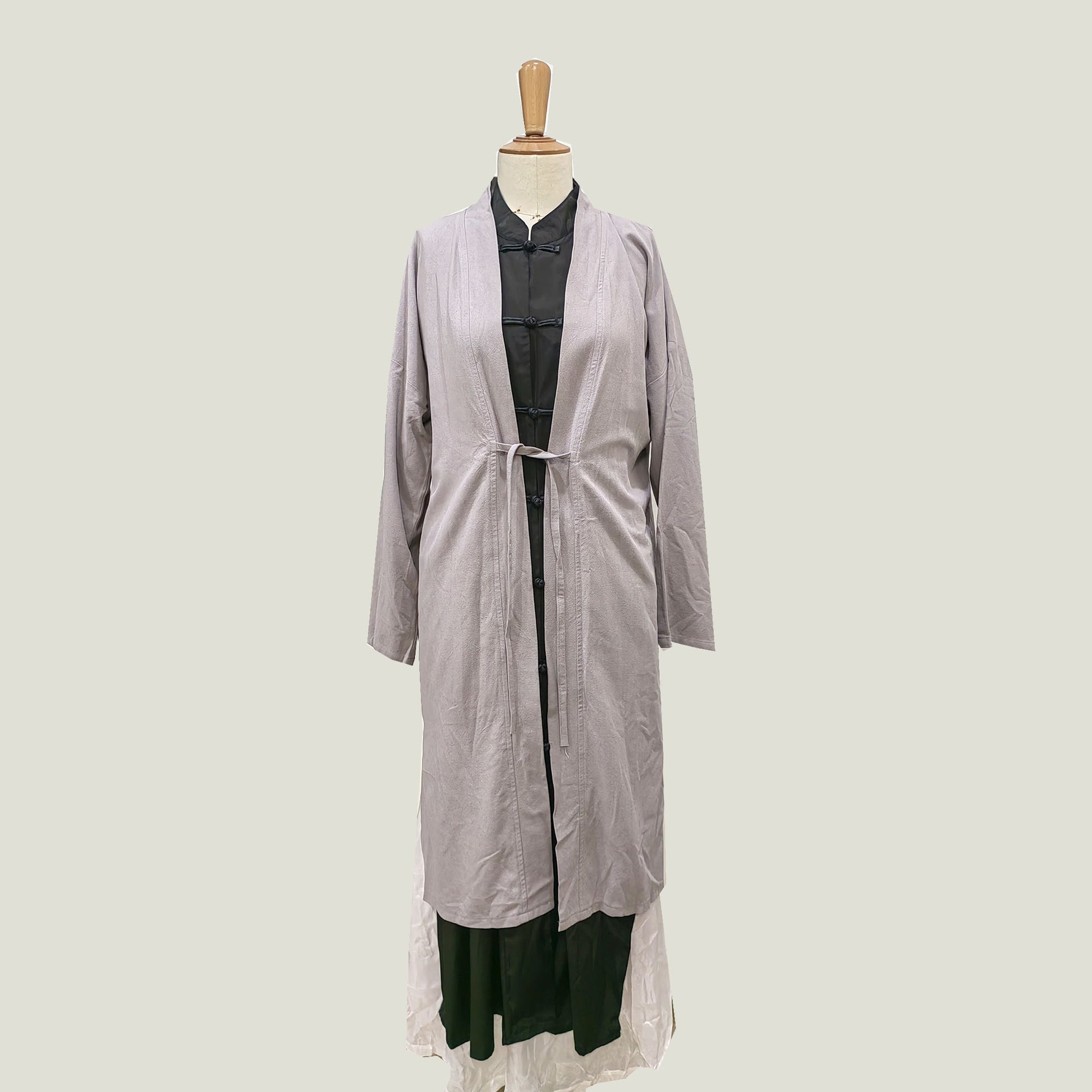 This hanfu style top layer long cardigan is  made by cotton. medium thickness.