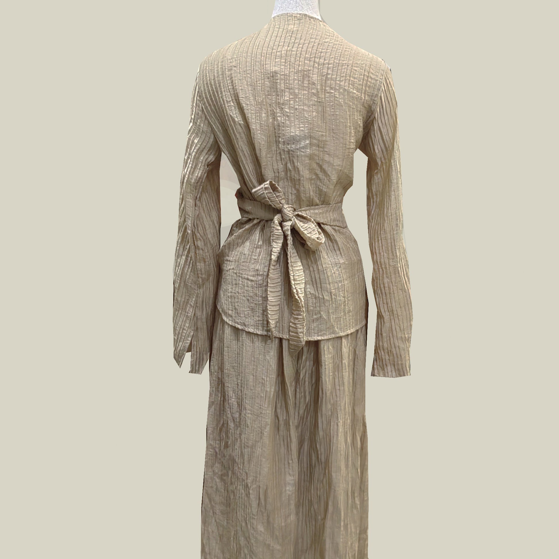 The top is cross front and tight with 2 belts on the waist. Top length 63cm/24.8"