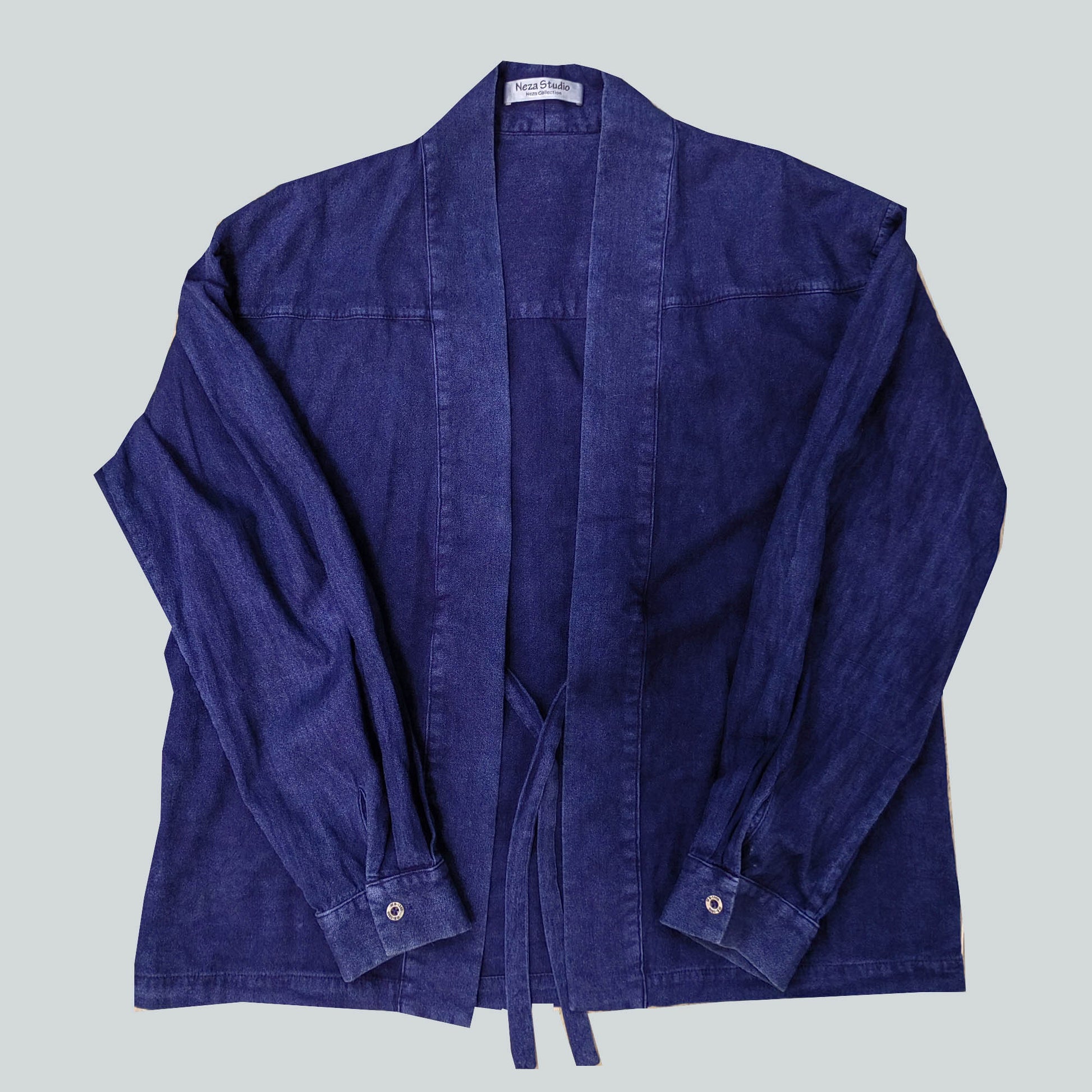 This kimono style cotton shirt is made by hand dyed indigo cotton.