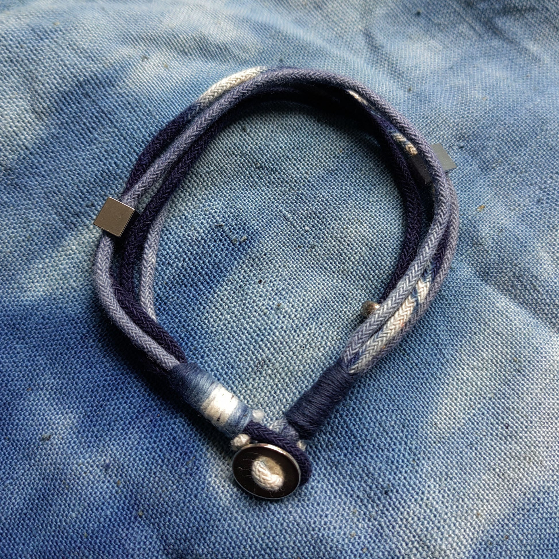 Indigo Hand dye Blue braided pattern unisex kumihimo bracelet with Silver beads
