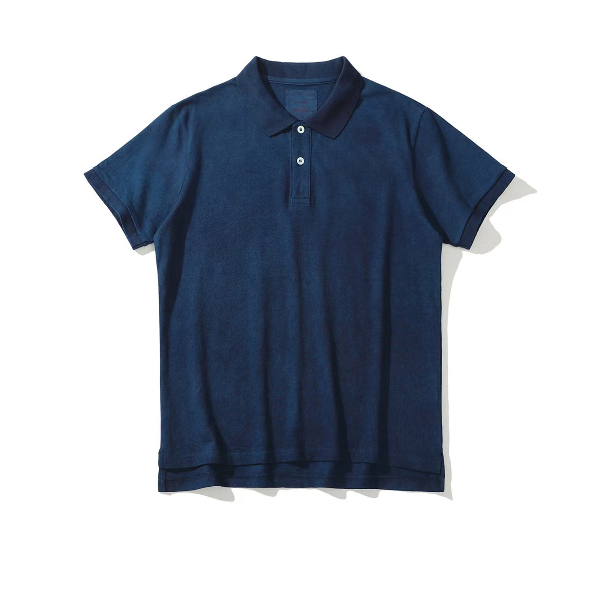 This polo shirt is made by high quality cotton,  hand dye in plant vat many times to get this vintage indigo blue color.
