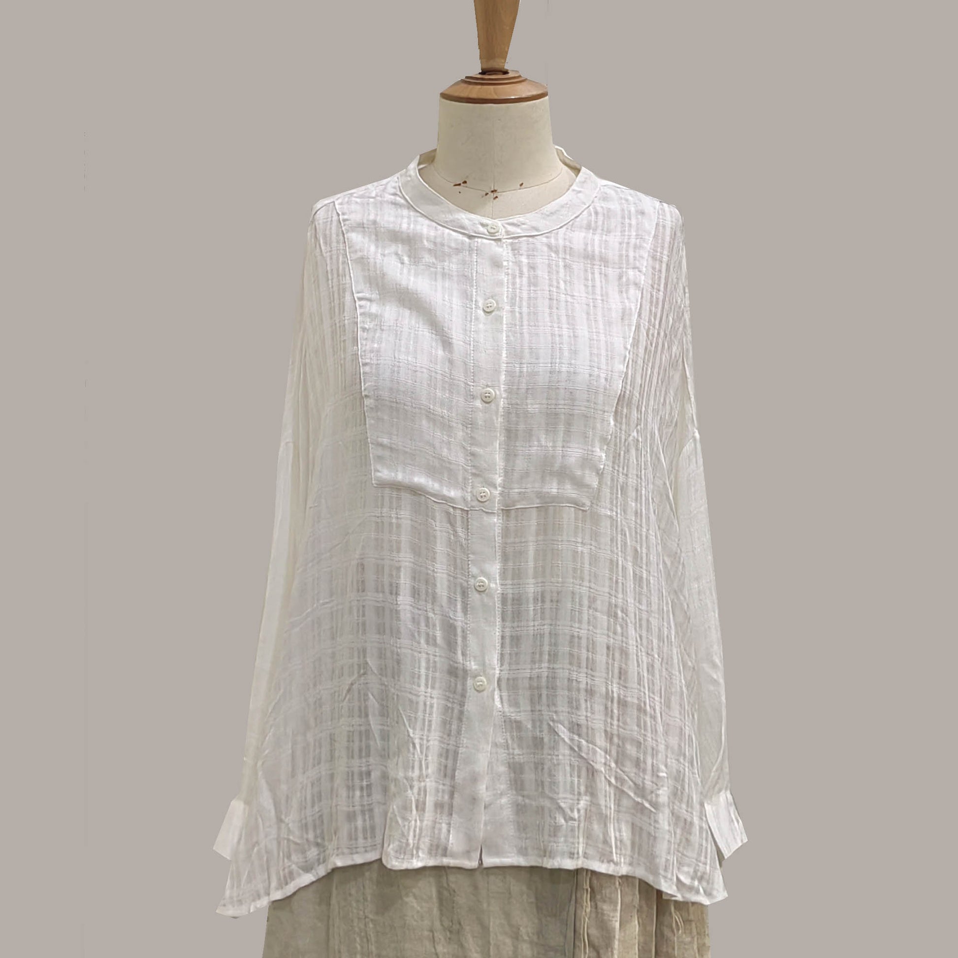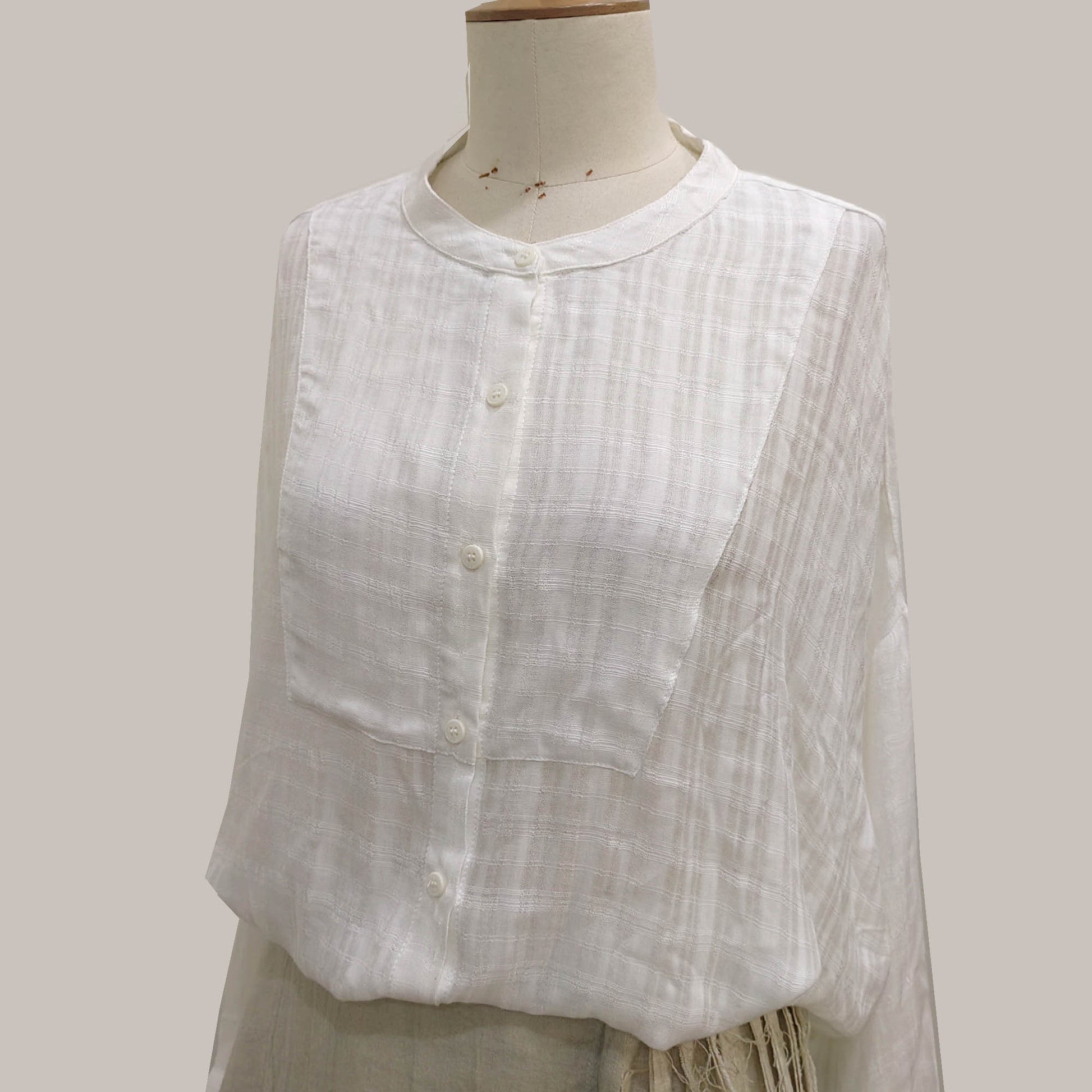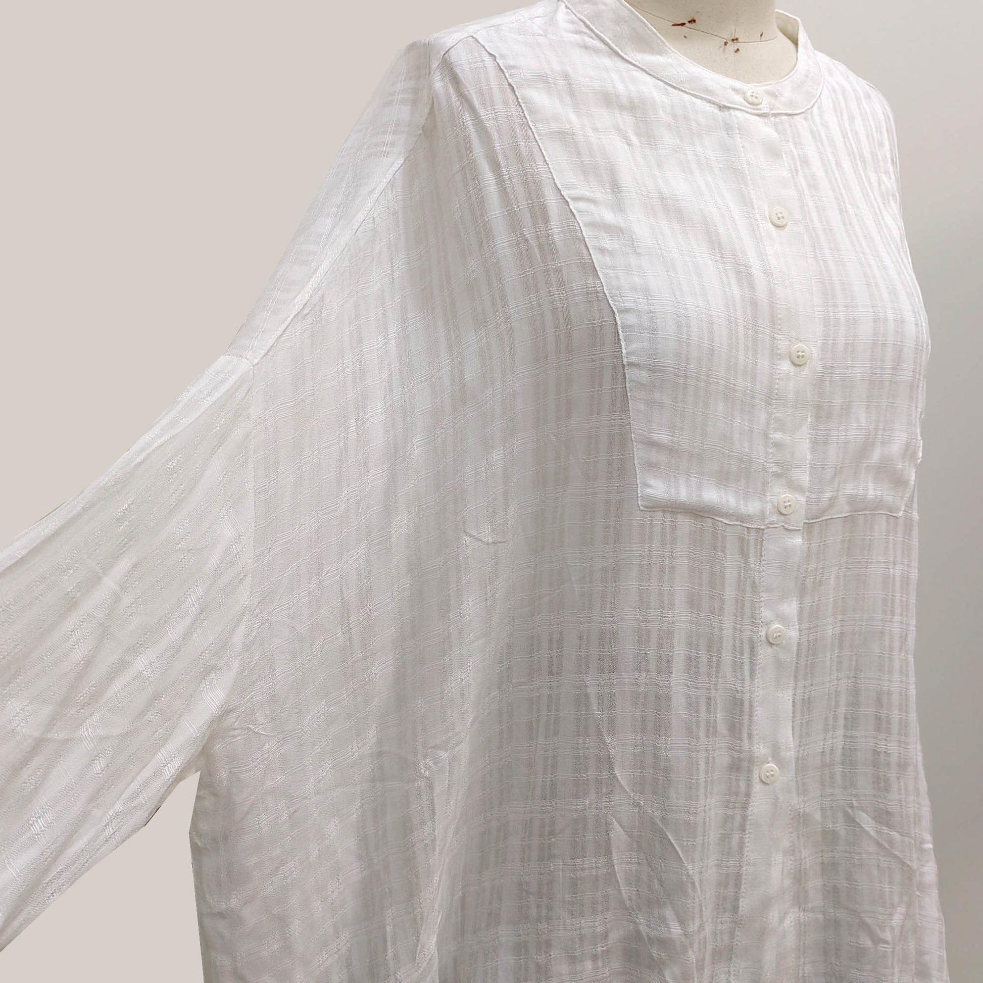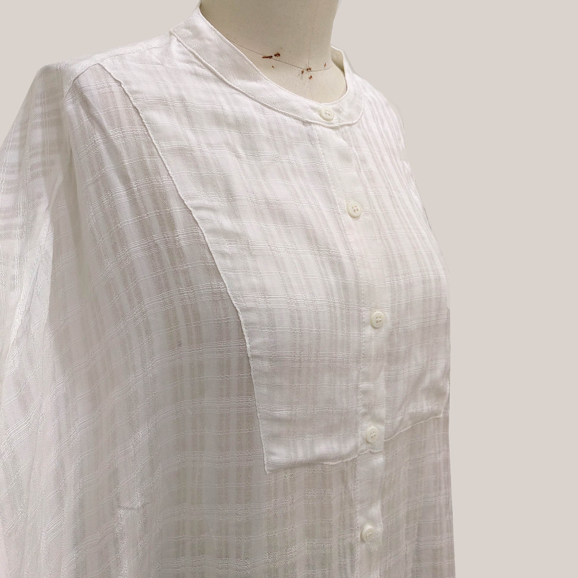 Light weight white blouse checked weave rayon shirt white shirt loose fit