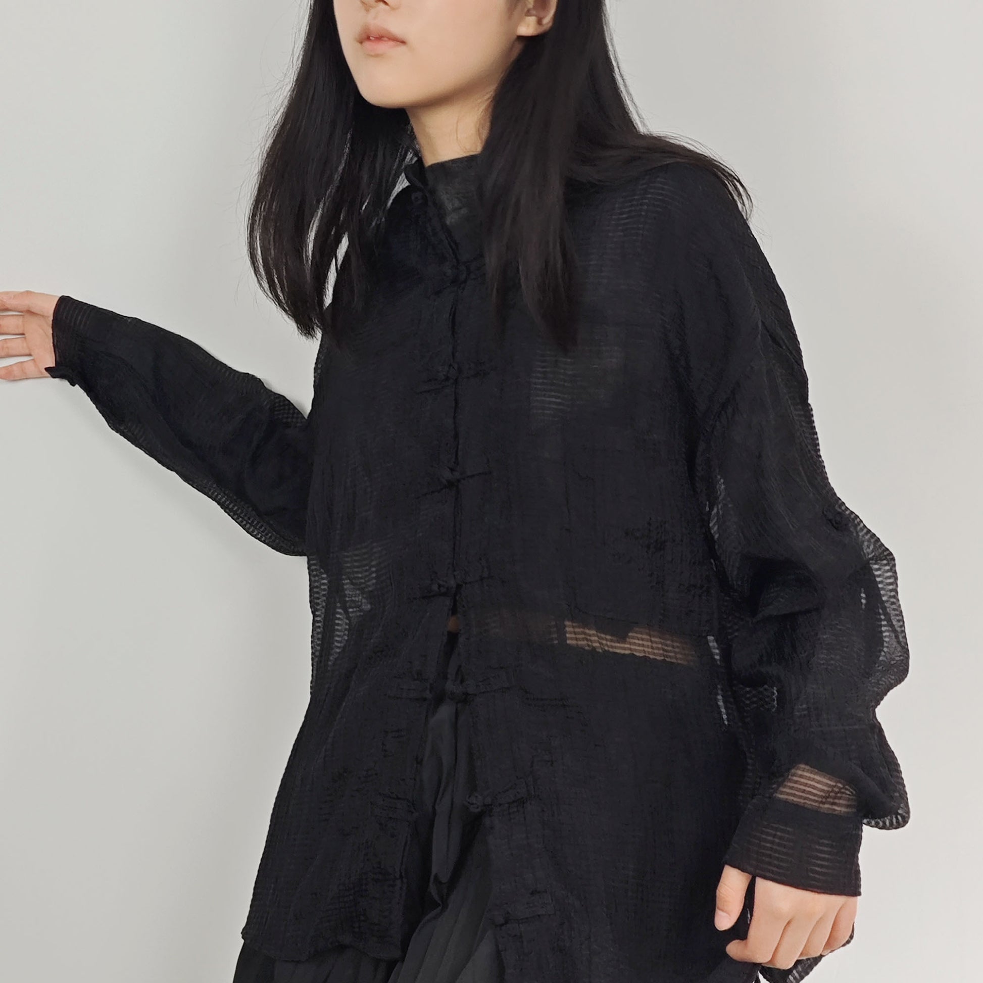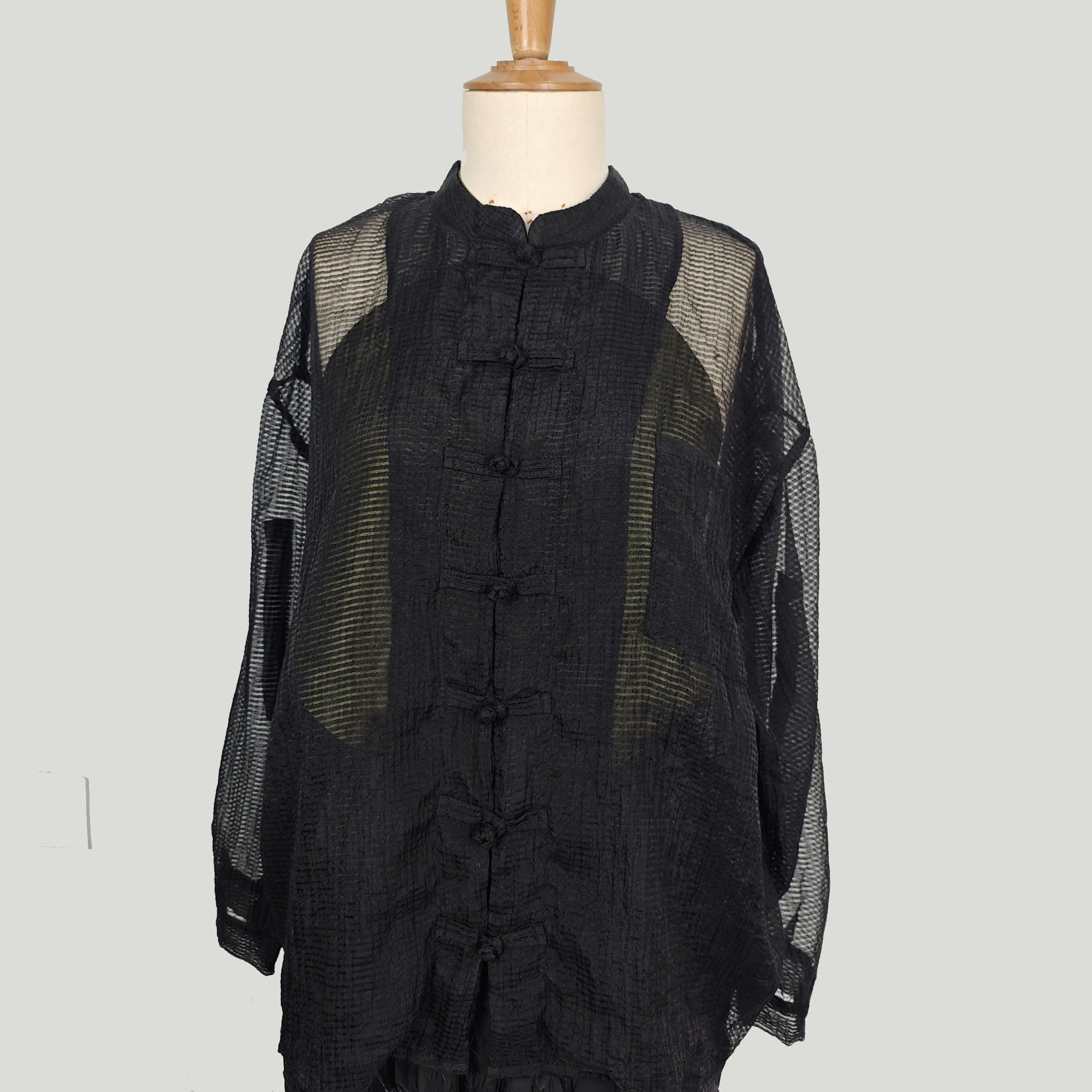 Light weigth see through Tang suit top tencel blended fabric loose fit tang suit style blouse