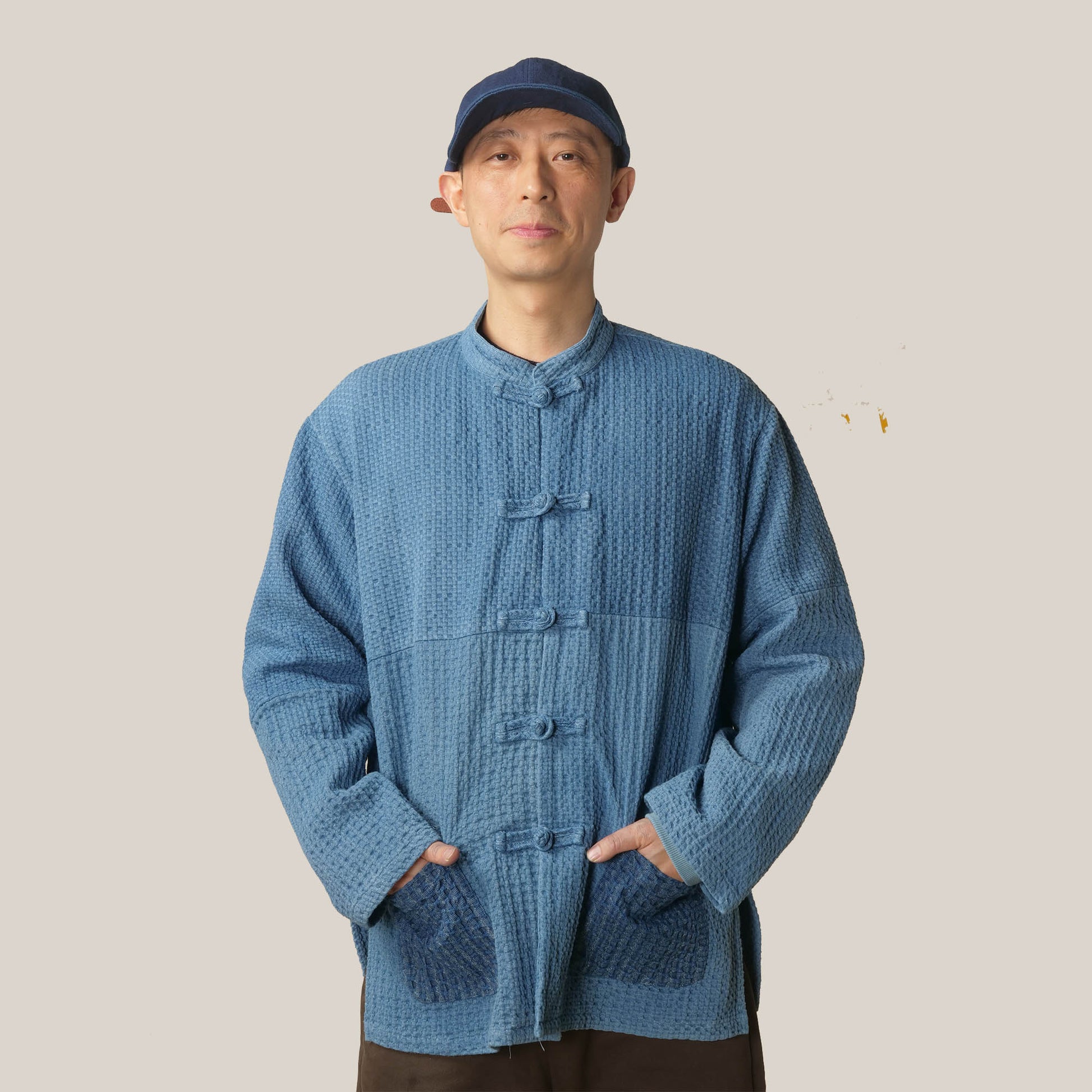 Patchwork Chinese Tang Suit Cotton Shirt Konfu Shirt Tang Suit Top Washed Denim Look Cheongsam Shirt made to order random patched denim Tang