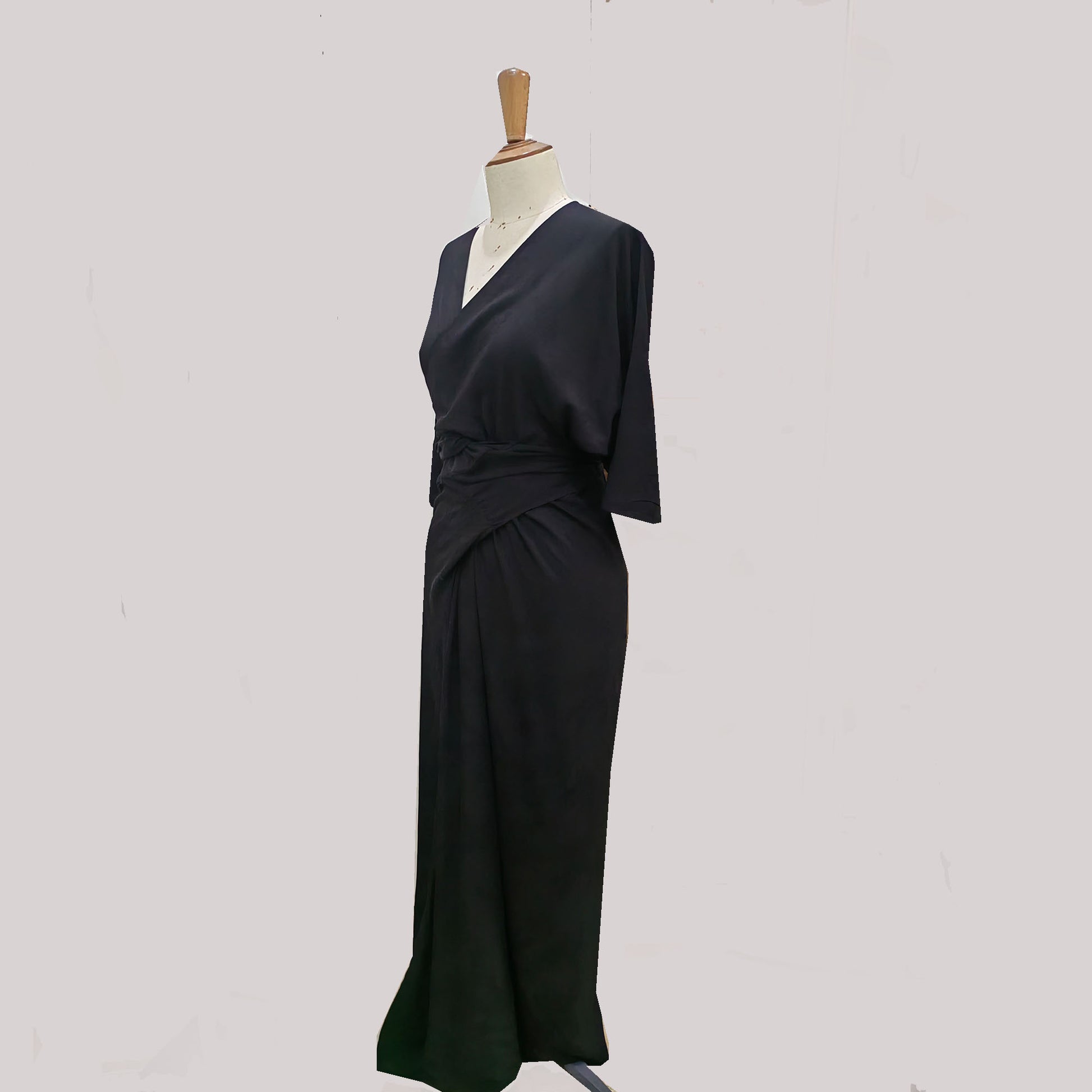 Rayon dress wrap dress extra length front cross wrap up dress