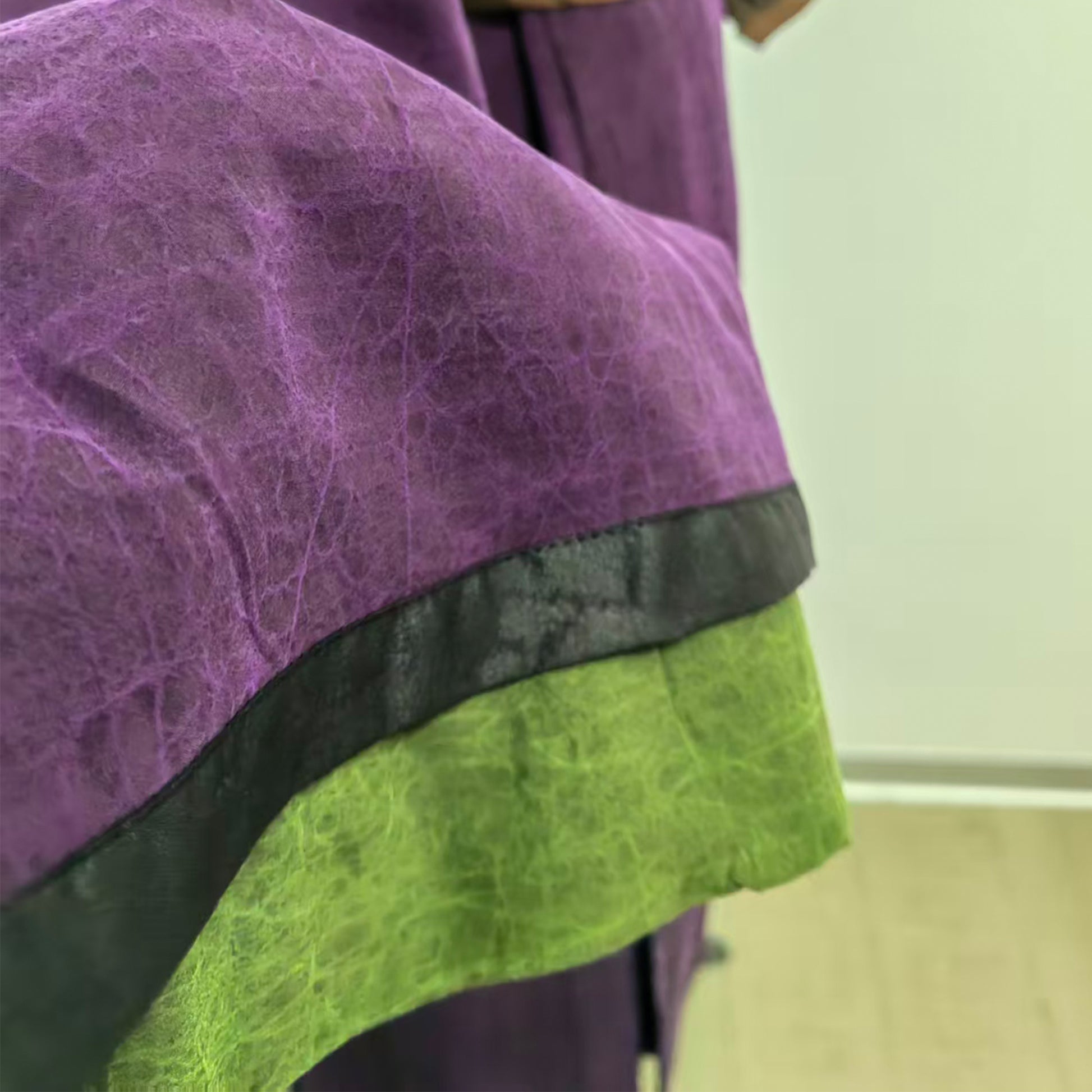 the first one is 100% gambiered Canton silk. which is dyed with natural mineral by hand.