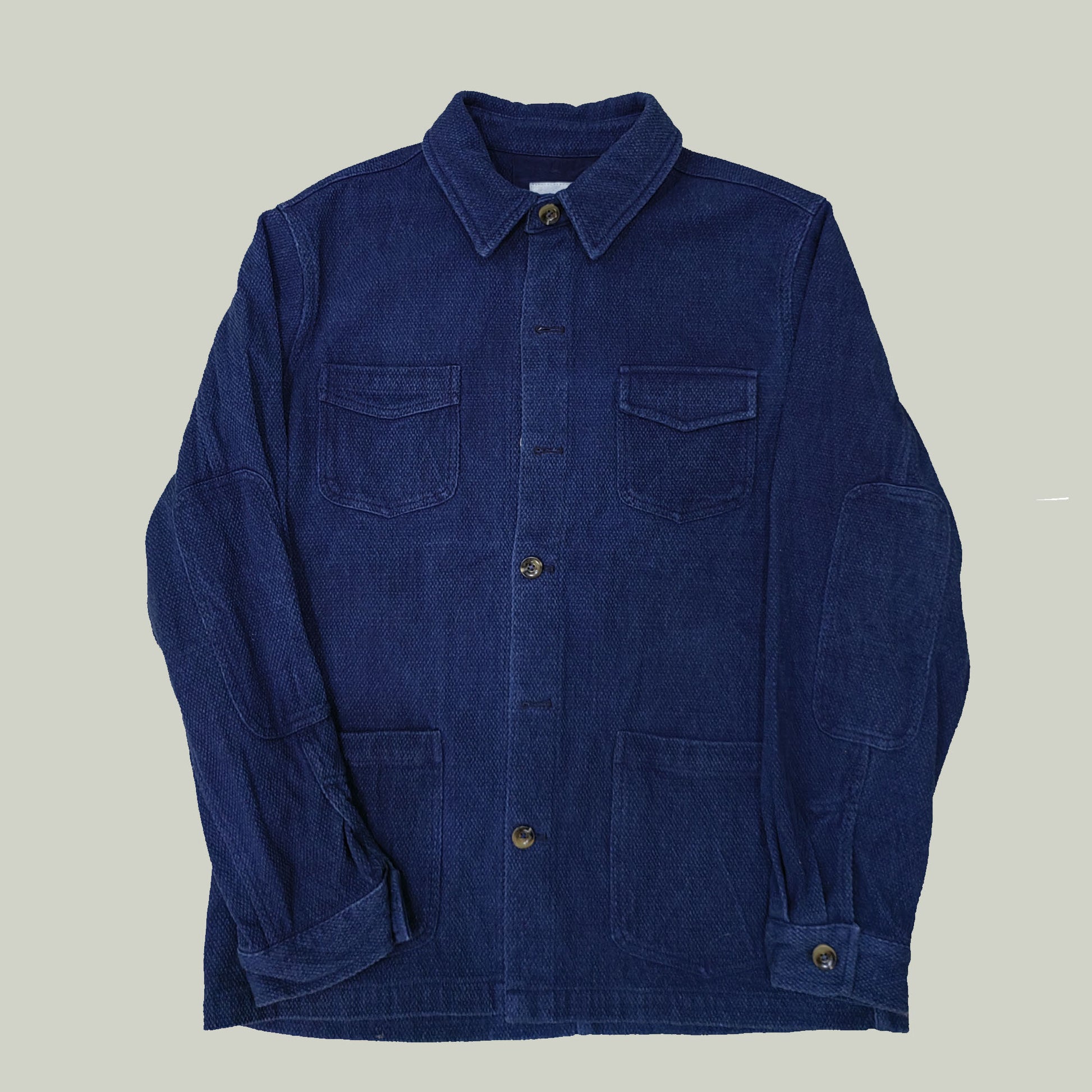 Retro French work jacket Indigo dyed sashiko cotton fabric retro jacket