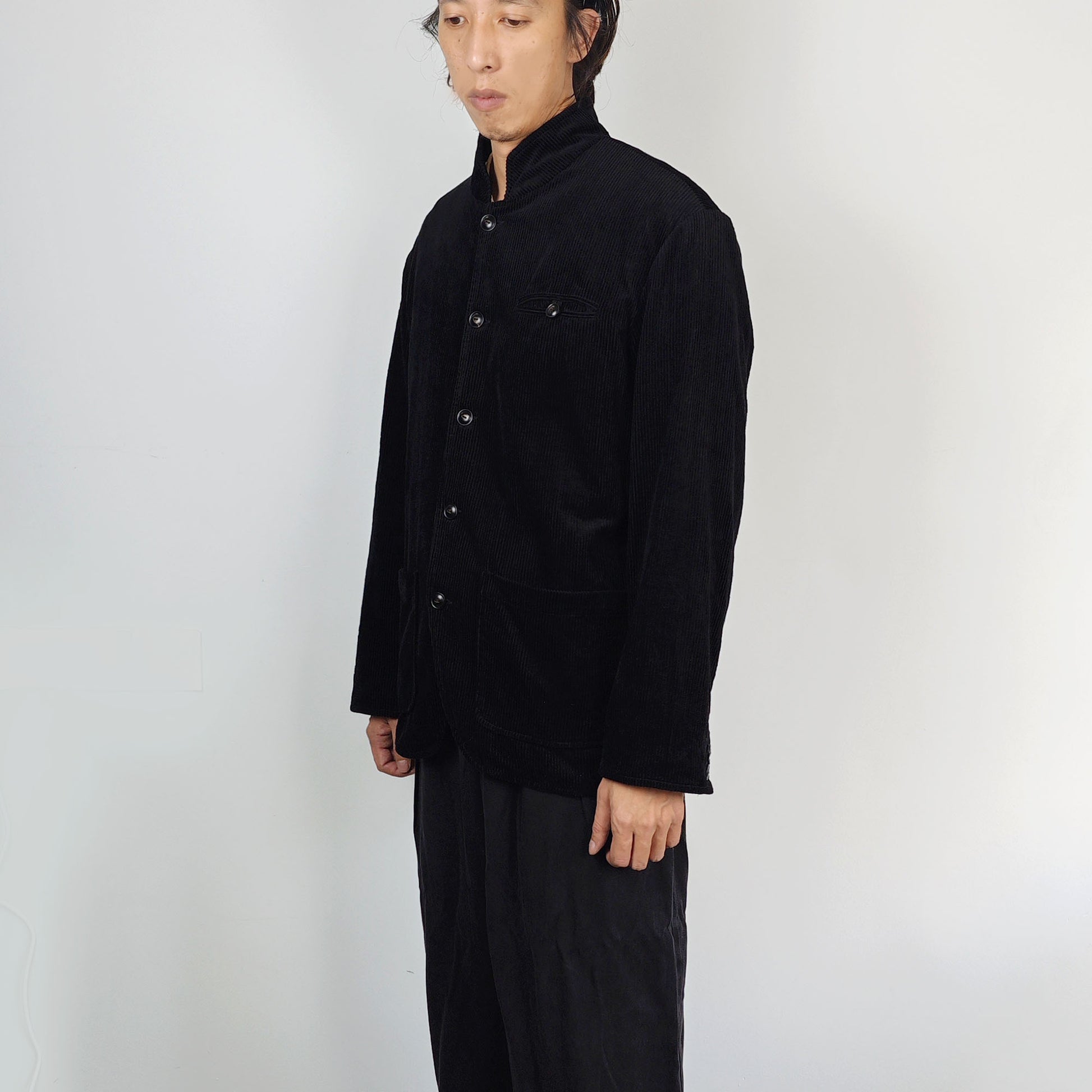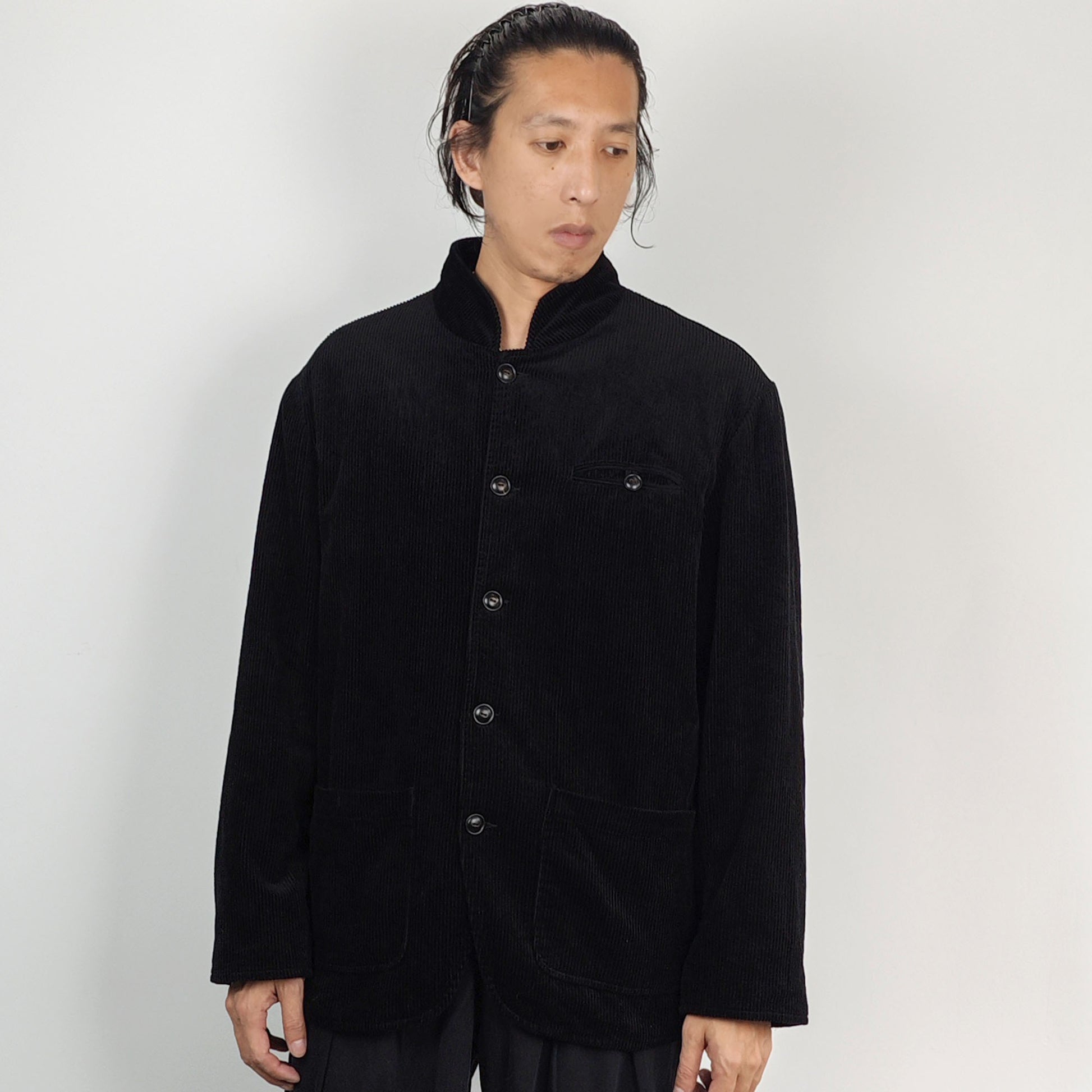 This retro style jacket is made by cotton corduroy fabric which is very thick. the collar rather than normal flap collar, it is a stand band collar.