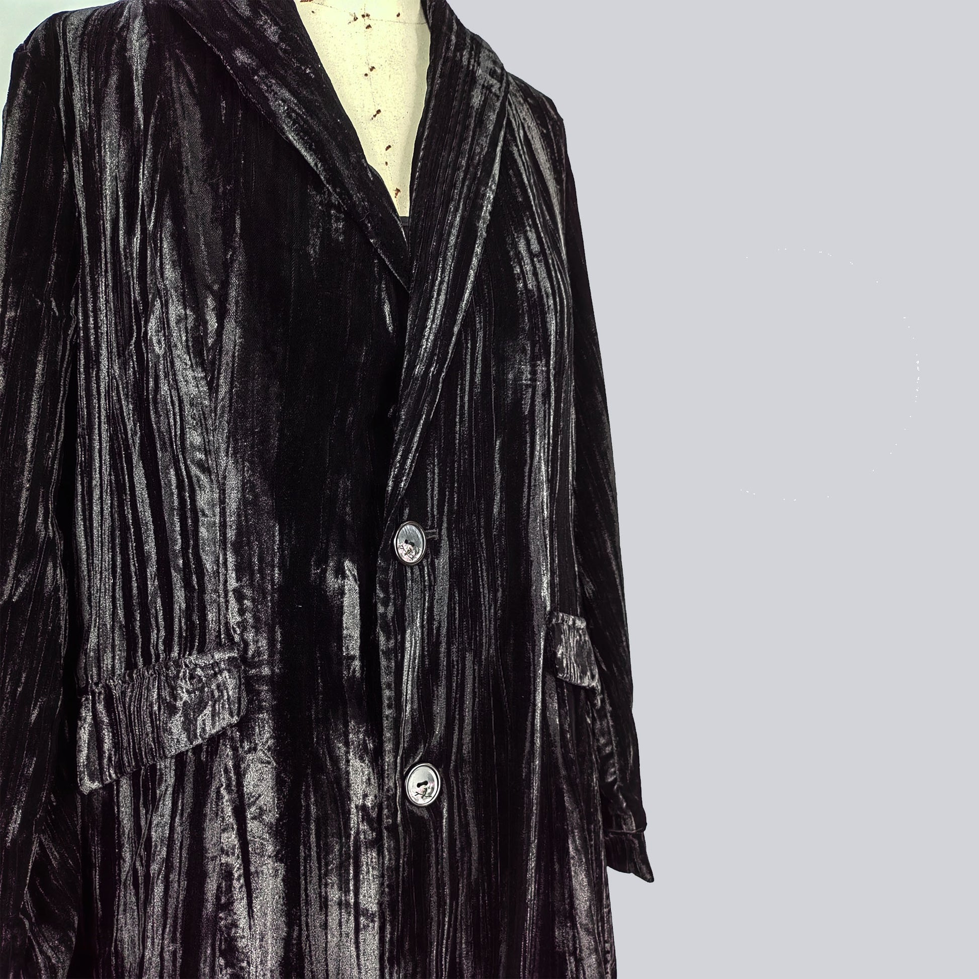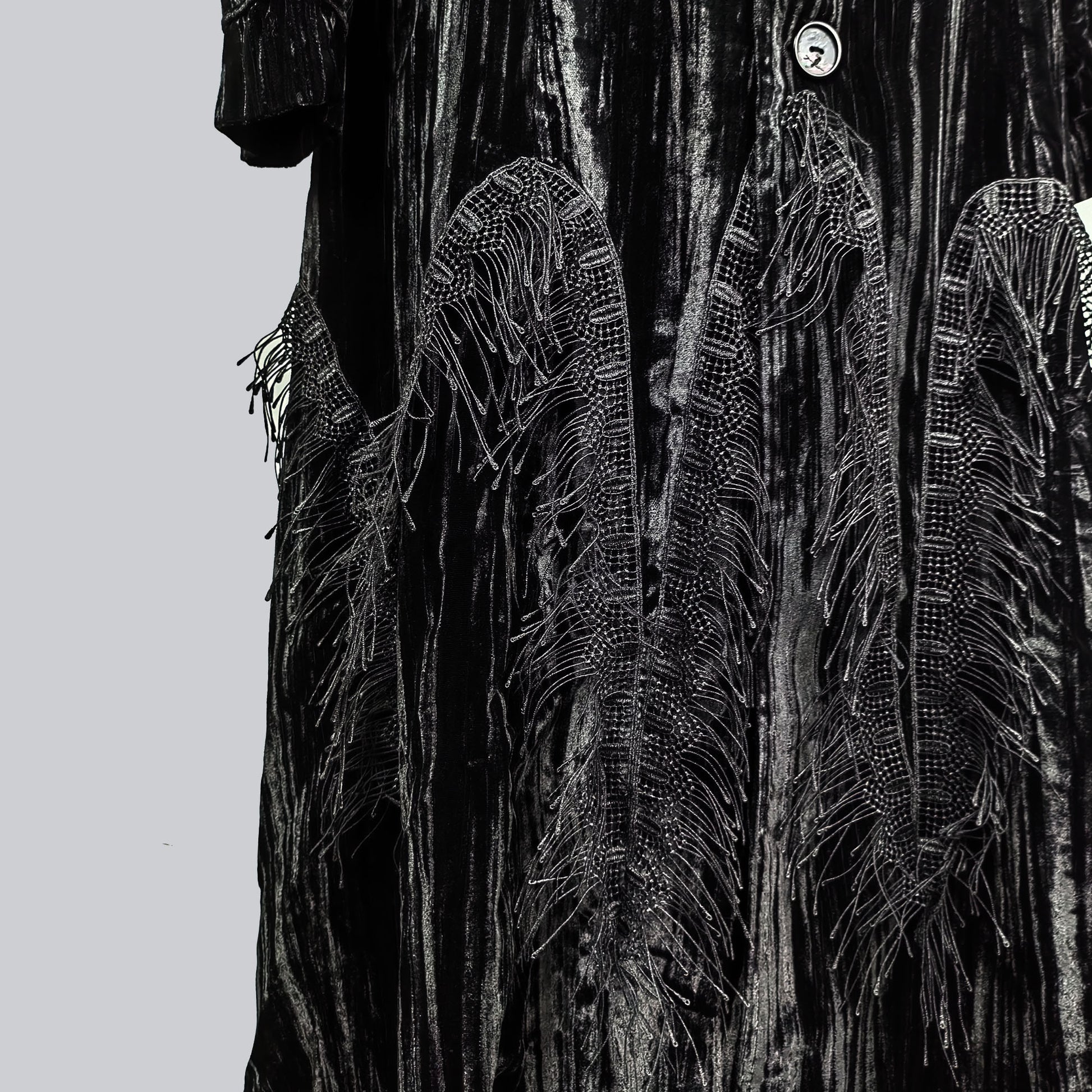 Sample sale Black velvet long jacket with lash lace details long velet jacket