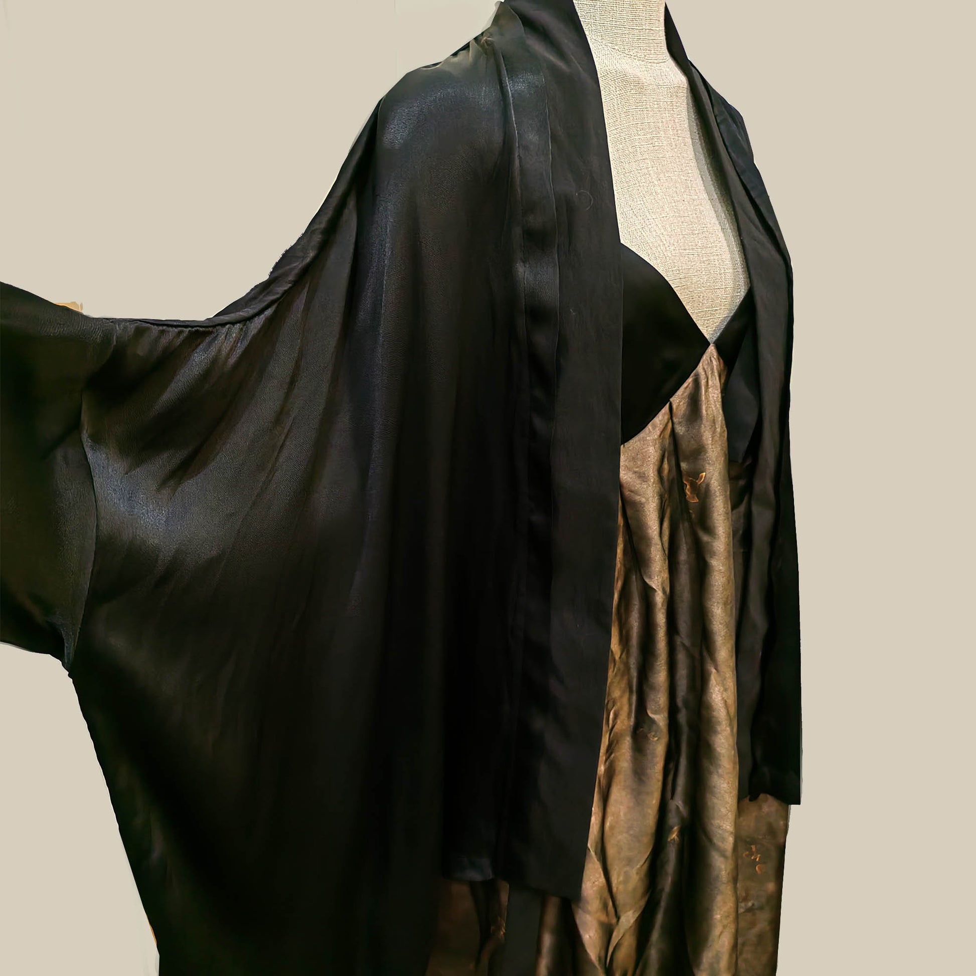Silk Kimono Style open cardigan loose fit kimono jacket black satin silk blouse