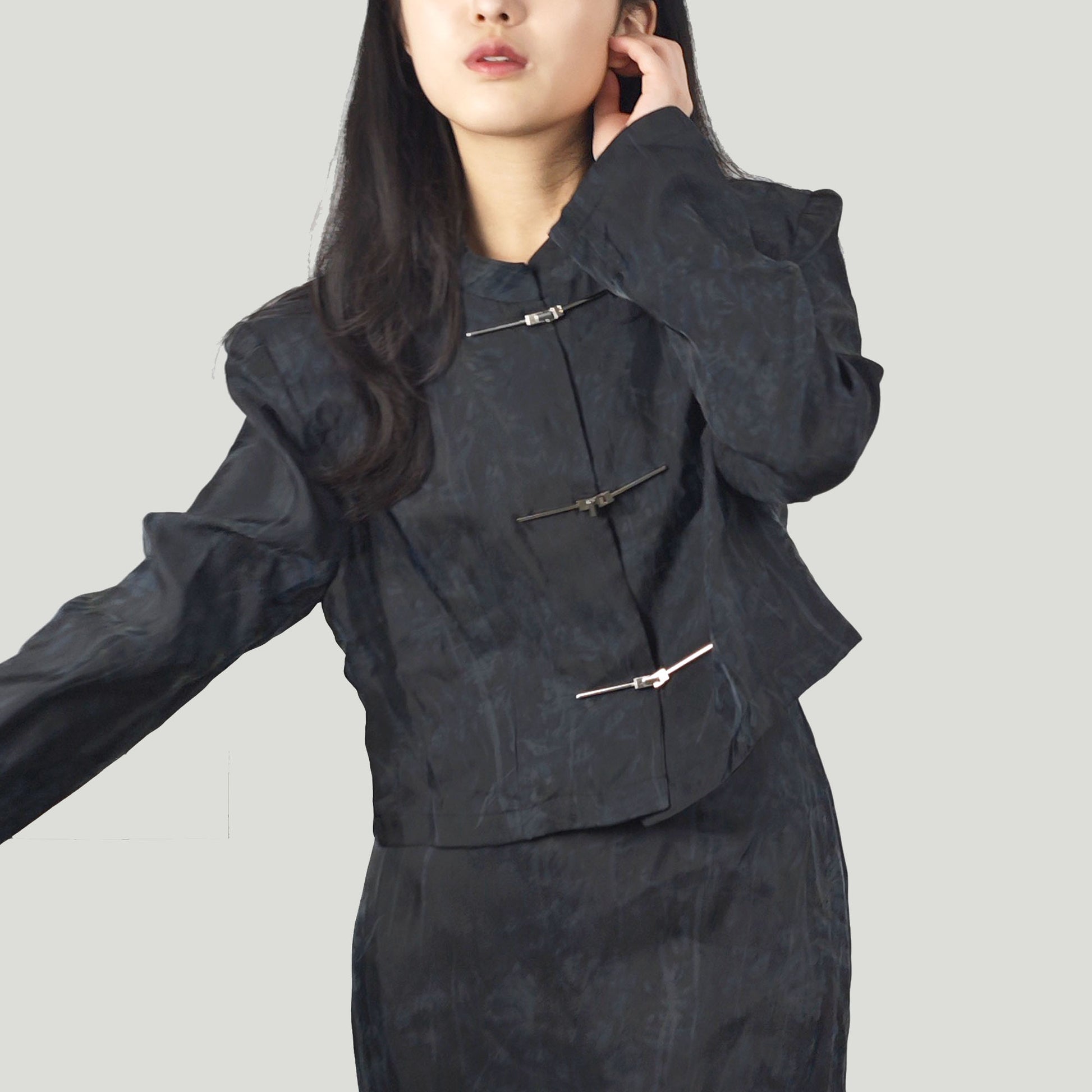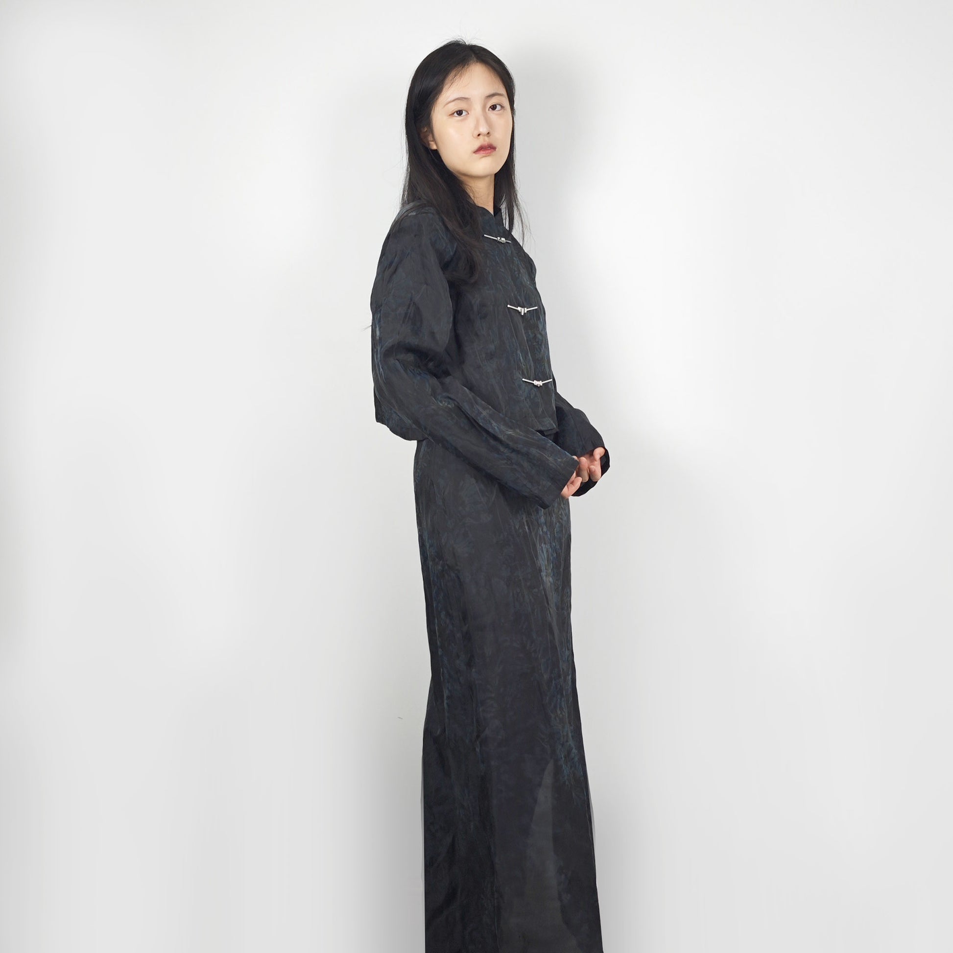 Tencel Tang suit style set crop top + slit skirt loose fit crop top tang suit style jacket Cheongsam jacket