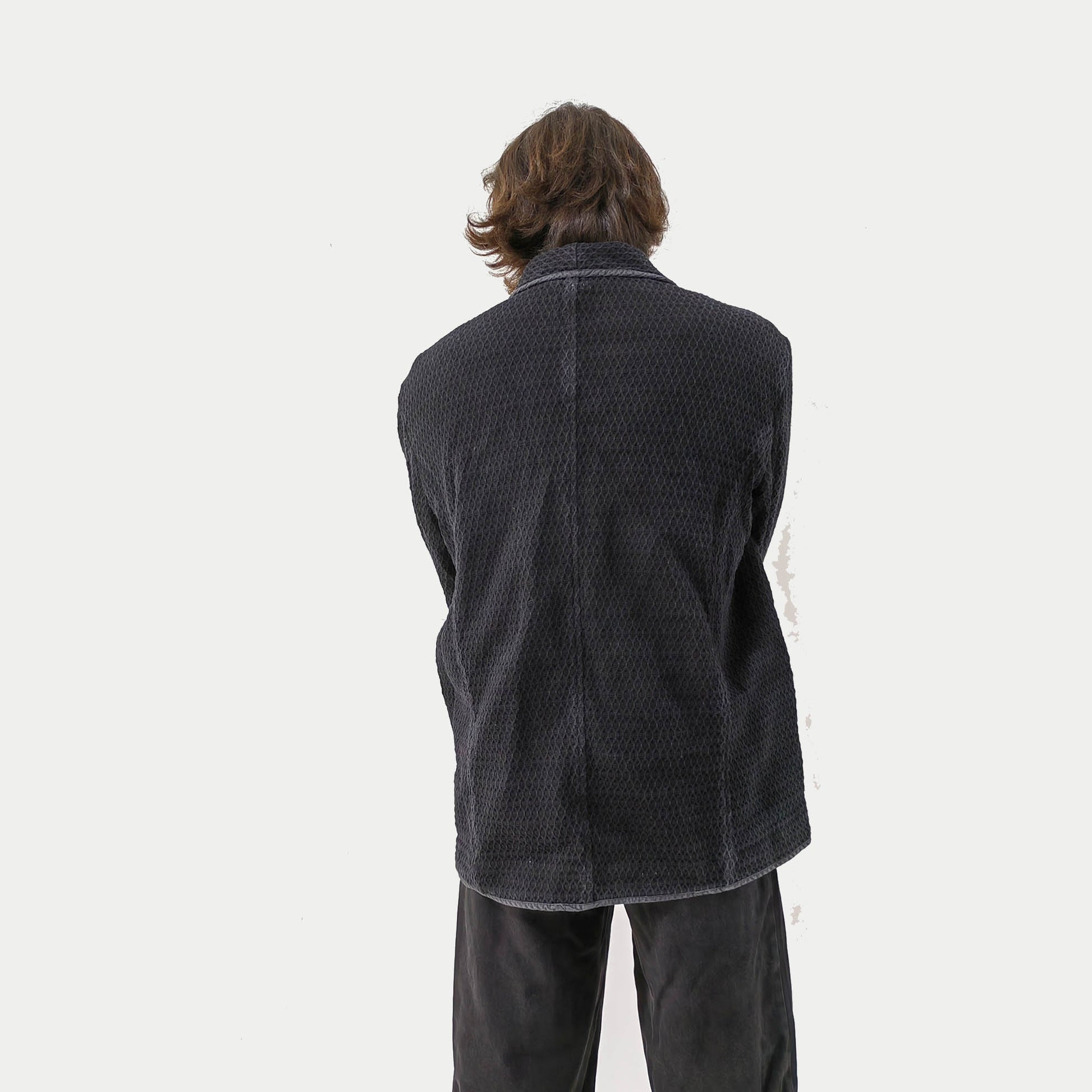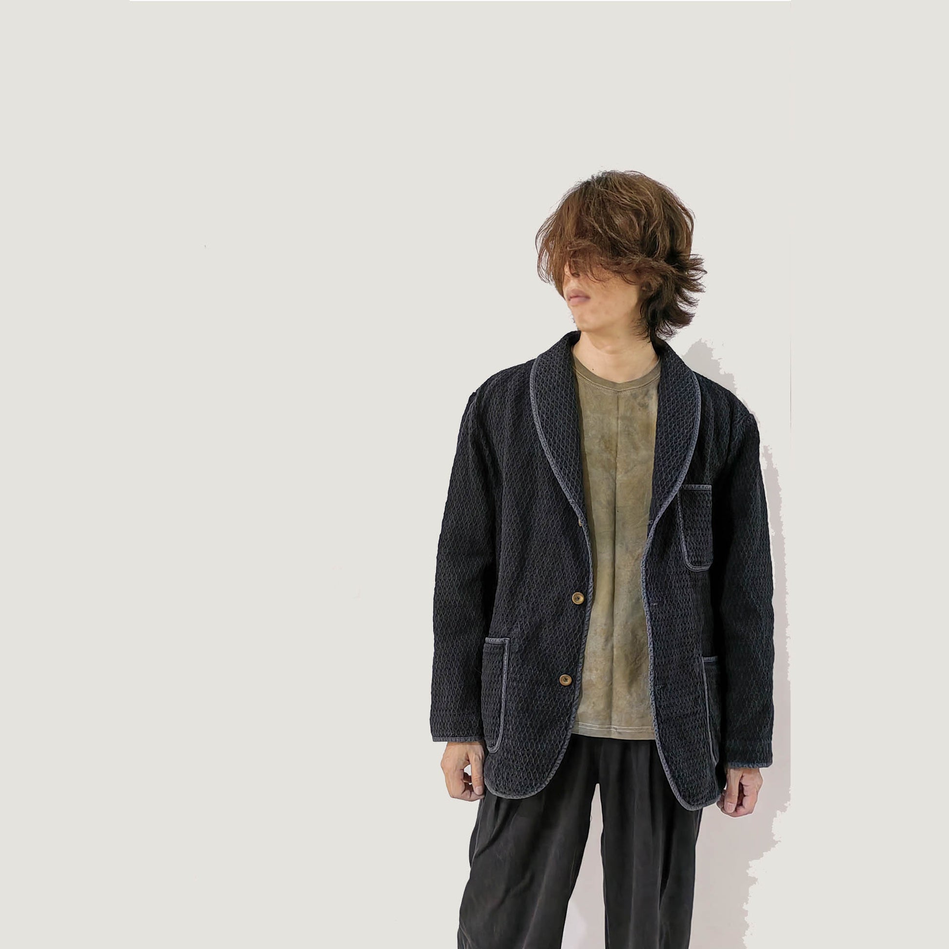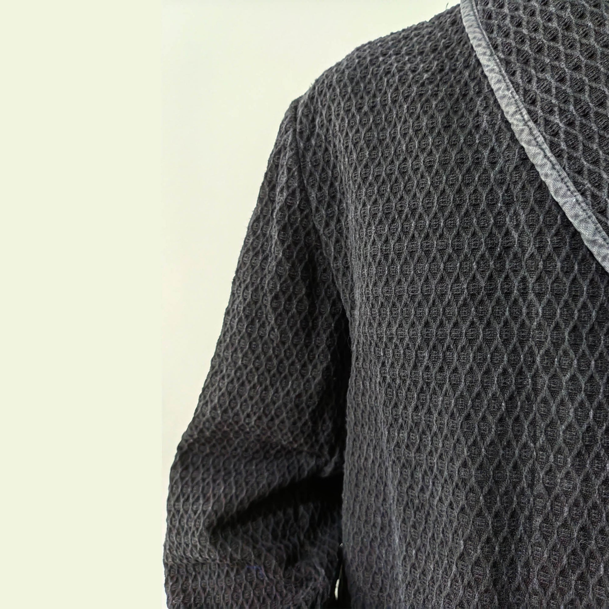 Washed black cotton smoking jacket men's oversize jacket with shawl collar 3D texture thick cotton coat loose fit men's jacket cotton coat